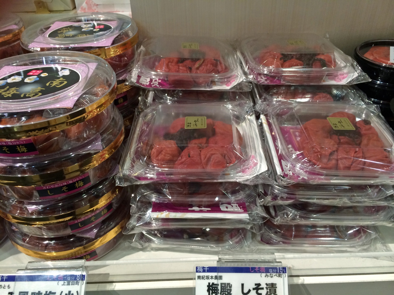 店内には、様々な紀州の梅が並んでいます。どれにするか迷ってしまいますが、今回はお店の入口で店頭販売していた、塩と愛情だけ使用した白干梅をいただきました。しょっぱいけどうまい!