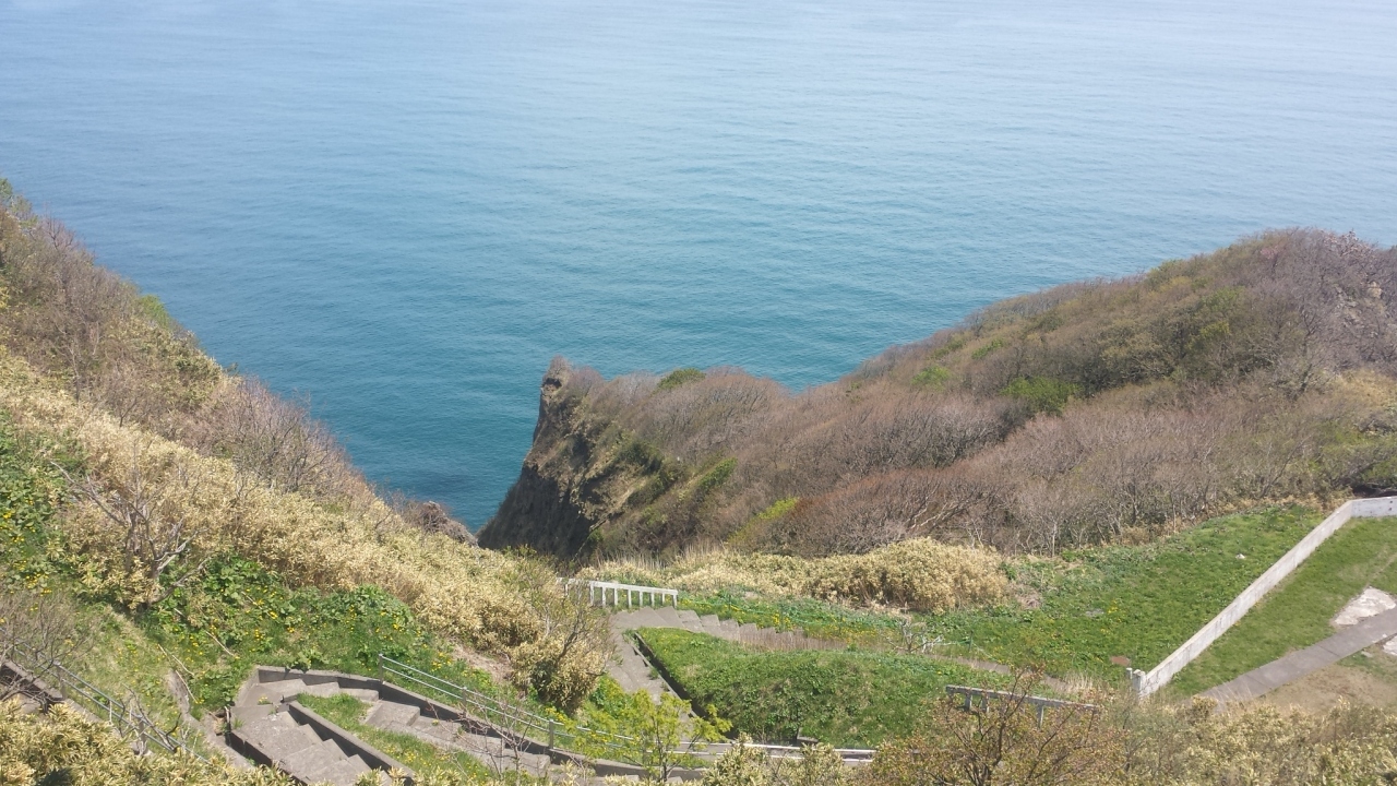 地球岬にあります。展望台に階段を昇って上がると視界が開けます。