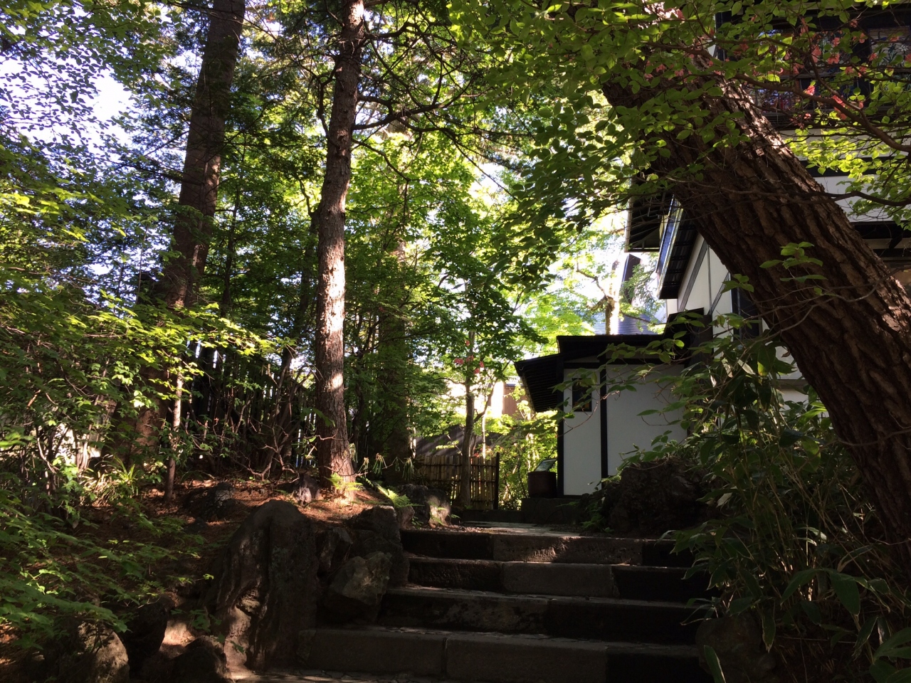 草津温泉の湯畑からは少し離れていますが、人混みから逃れ、緑に囲まれてほっとできる空間です。