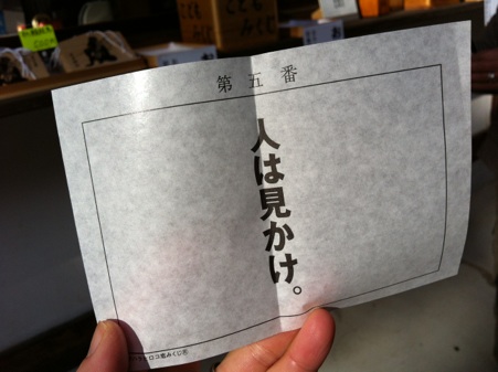 大吉でも吉でもない、イチハラヒロコさんのユーモアいっぱいのおみくじが引けました。