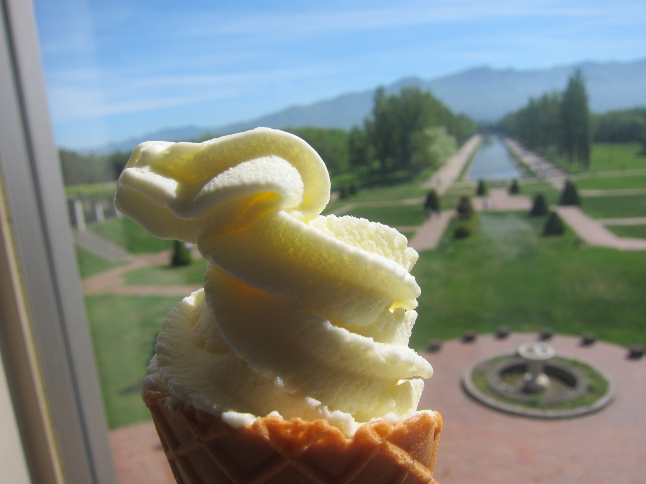 屋内のラウンジには椅子とテーブルが並び、カレーや焼きそば、そして“森林うどん”や“森林そば”なるものの他、ポテトもち、フランクフルト、ソフトクリームやかき氷など、軽食をいただくことができます(土休日は10時~16時)。ソフトクリームはミルク味がありましたが、バニラの風味がしました。それよりもチーズ味の方がミルクの濃厚な味わいがしました。