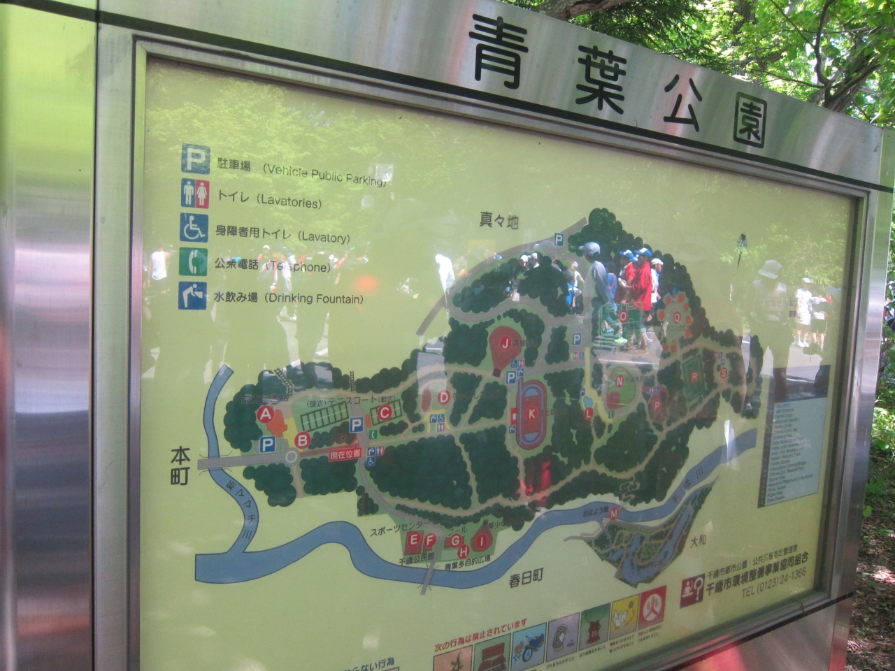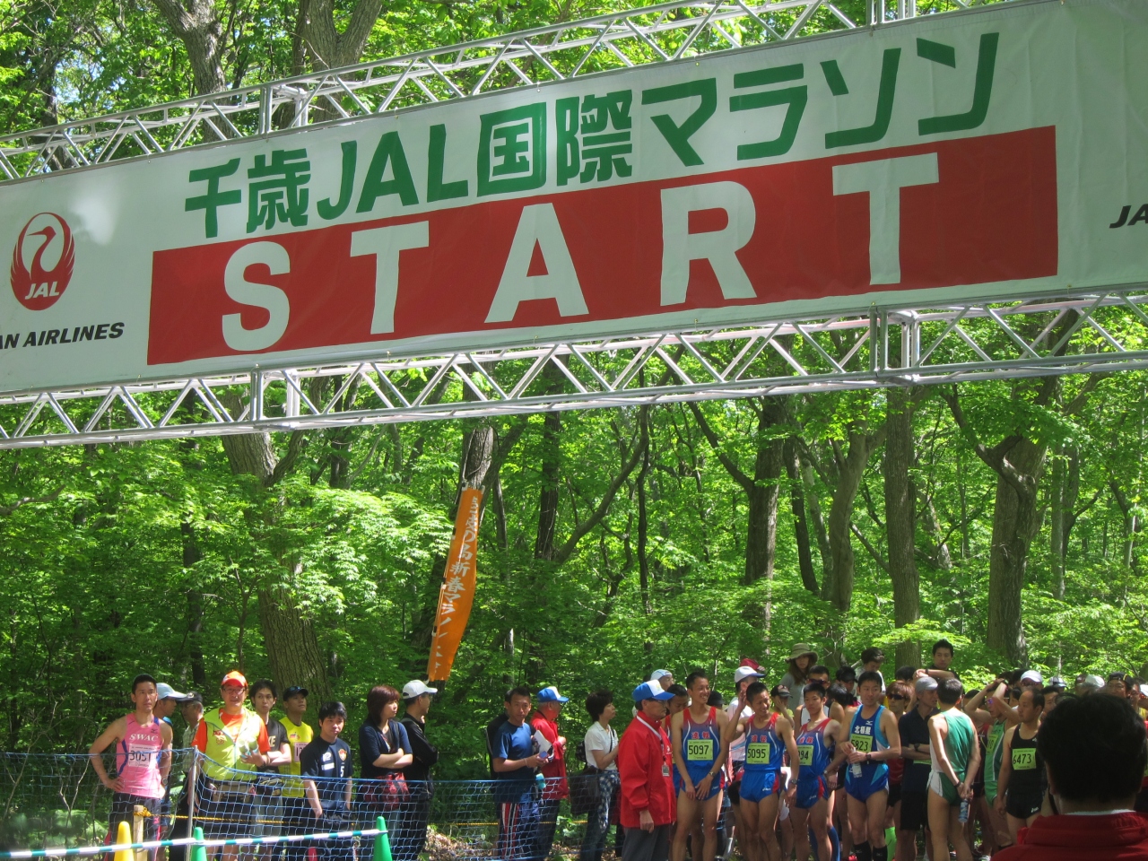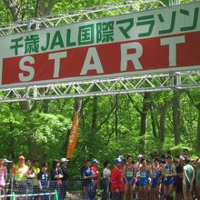毎年6月の第一日曜日には、青葉公園をスタート・ゴール地点として、千歳JAL国際マラソンが開催されます。公園から西の丘陵地の森の中を走るマラソンで、大会の日には公園内の千歳市スポーツセンターや公園の通路などは、ものすごい人混みとなります。公園は森に囲まれ、マラソンのコースも木々に囲まれた砂利道となっていて、緑のトンネルのようです。晴れた日は新緑で清々しいです。