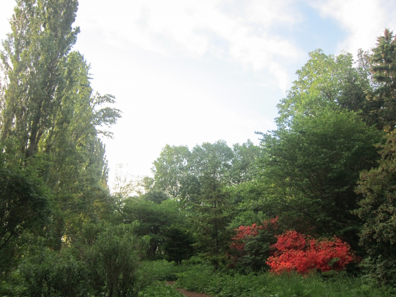その他、赤いツツジが咲いていましたが、逆にそれくらいで、園内は深々と緑に覆われていました。