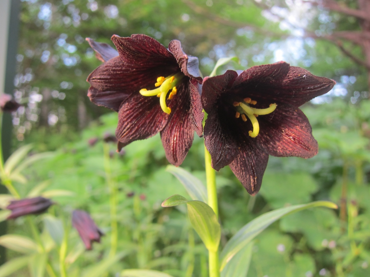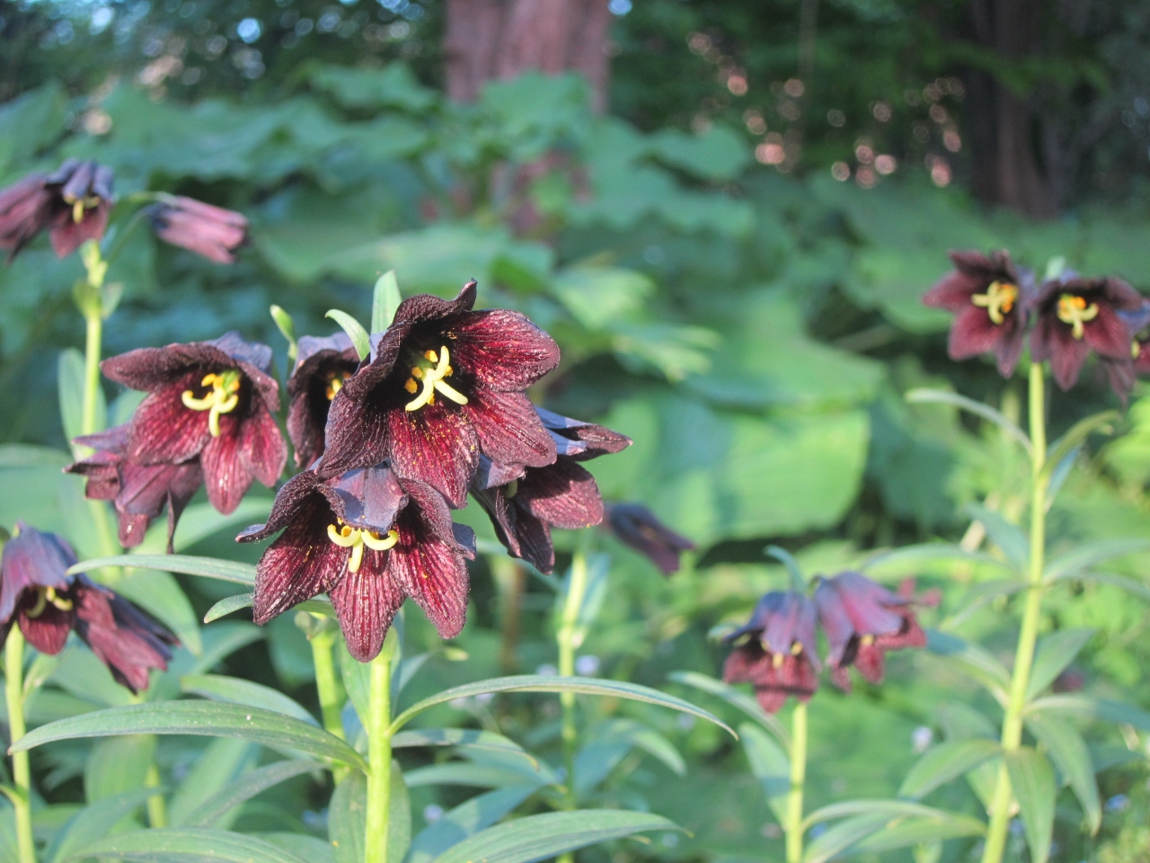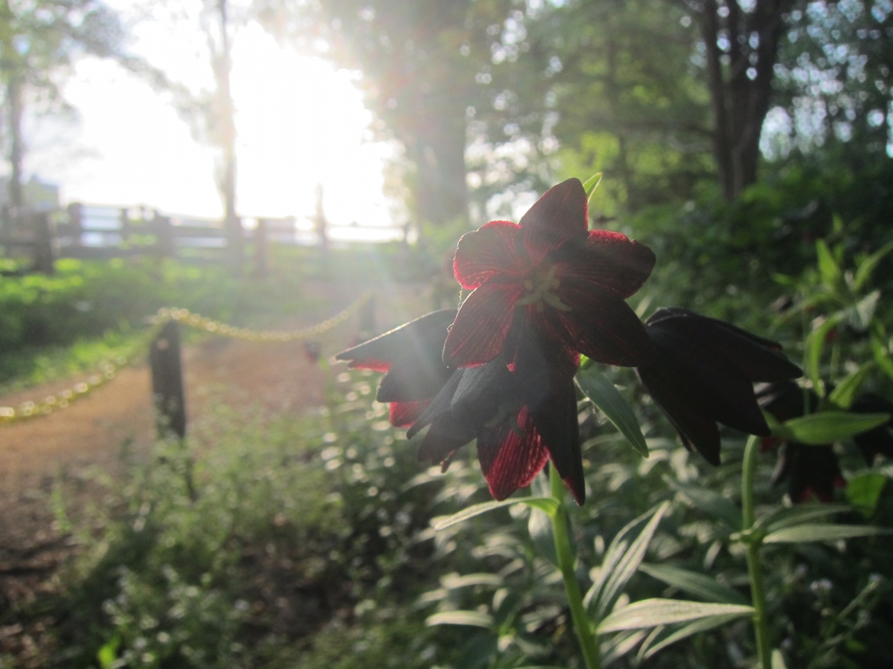 花木園の奥の方ではクロユリが咲いていました。5月下旬から6月の初めにかけて見頃のようです。何十本も群落をつくって林の中で咲いていました。2014年は5月末日の時点で、つぼみもありましたが、ほとんどの花が咲いていました。
