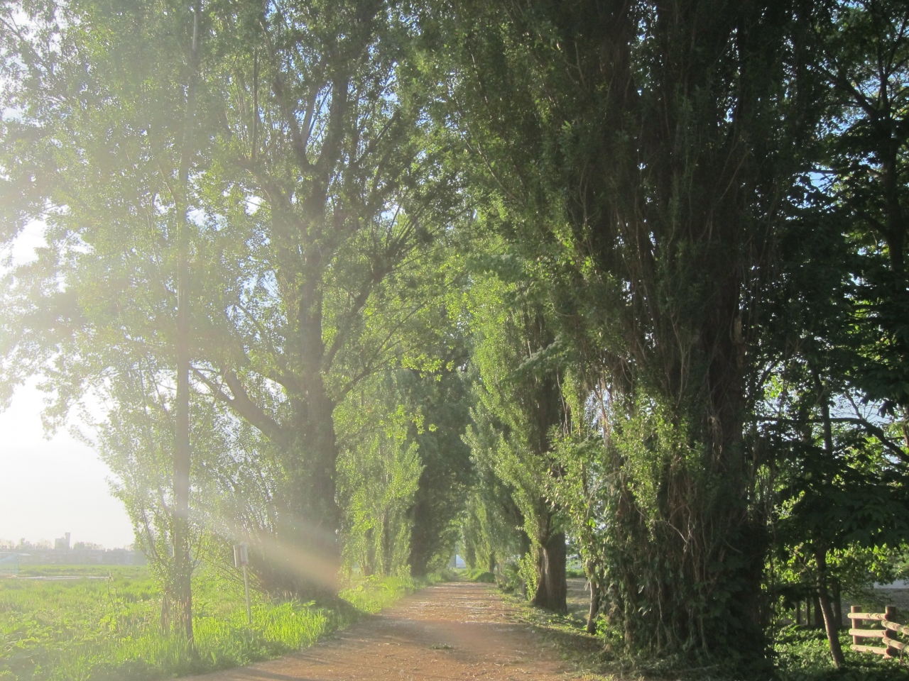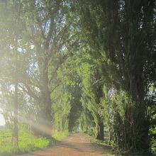 花木園もポプラ並木も大学の内部の方にあります。正門からは800mほど。大学の中央部を南北に貫くメインストリートを大学の総合博物館まで行き、その北側の道を200~300mほど西へ進んだところです。途中、博物館の北側で曲がるところには、学生食堂や購買の生協もあり、学生さんのみならず、一般の観光客も利用できるようです。北海道大学の学生になったような気分で、休憩に良いと思います。また、花木園の前にも一脚ですが、簡易なベンチも備えられていました。
