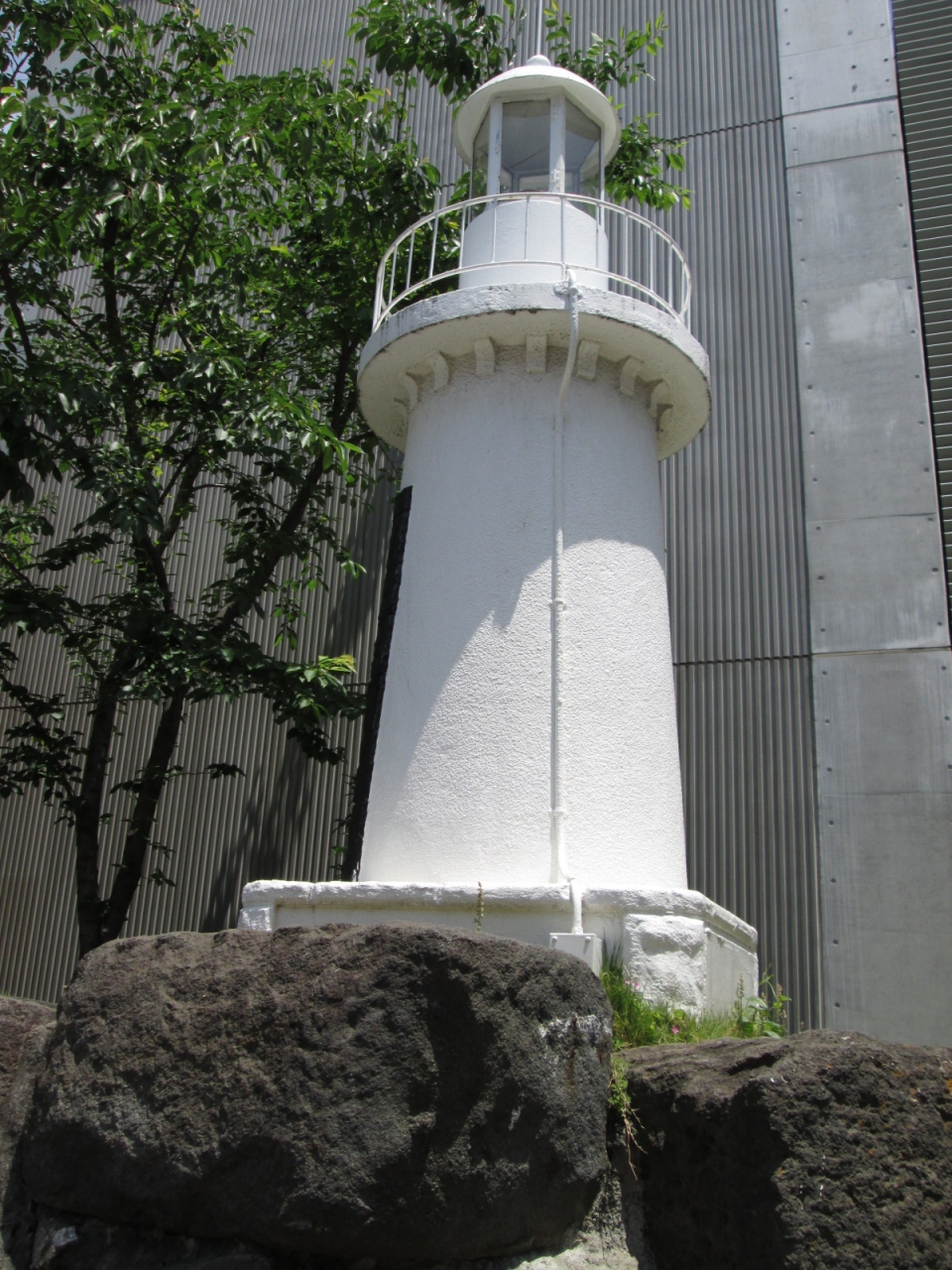 説明書きによると、ペリー来航を折りに、オランダの書物を参考に作られた砲台跡・・・今では埋め立てられて小学校として使われている・・・とのこと。説明書きの横には、明治3年に作られた日本で3番目の洋式灯台を模した「灯台」の模型があり、往時を偲ばせてくれます。