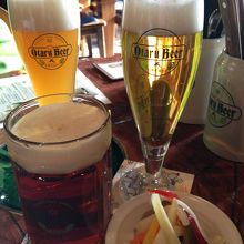 定番のヴァイス、ピルスナー、ドンケルを飲み比べ。出来たてビールはどれも美味~!ただビールもグラスももう少し冷えていただほうが良かったなぁ。次回は夜にしっかり訪れたいと思います。