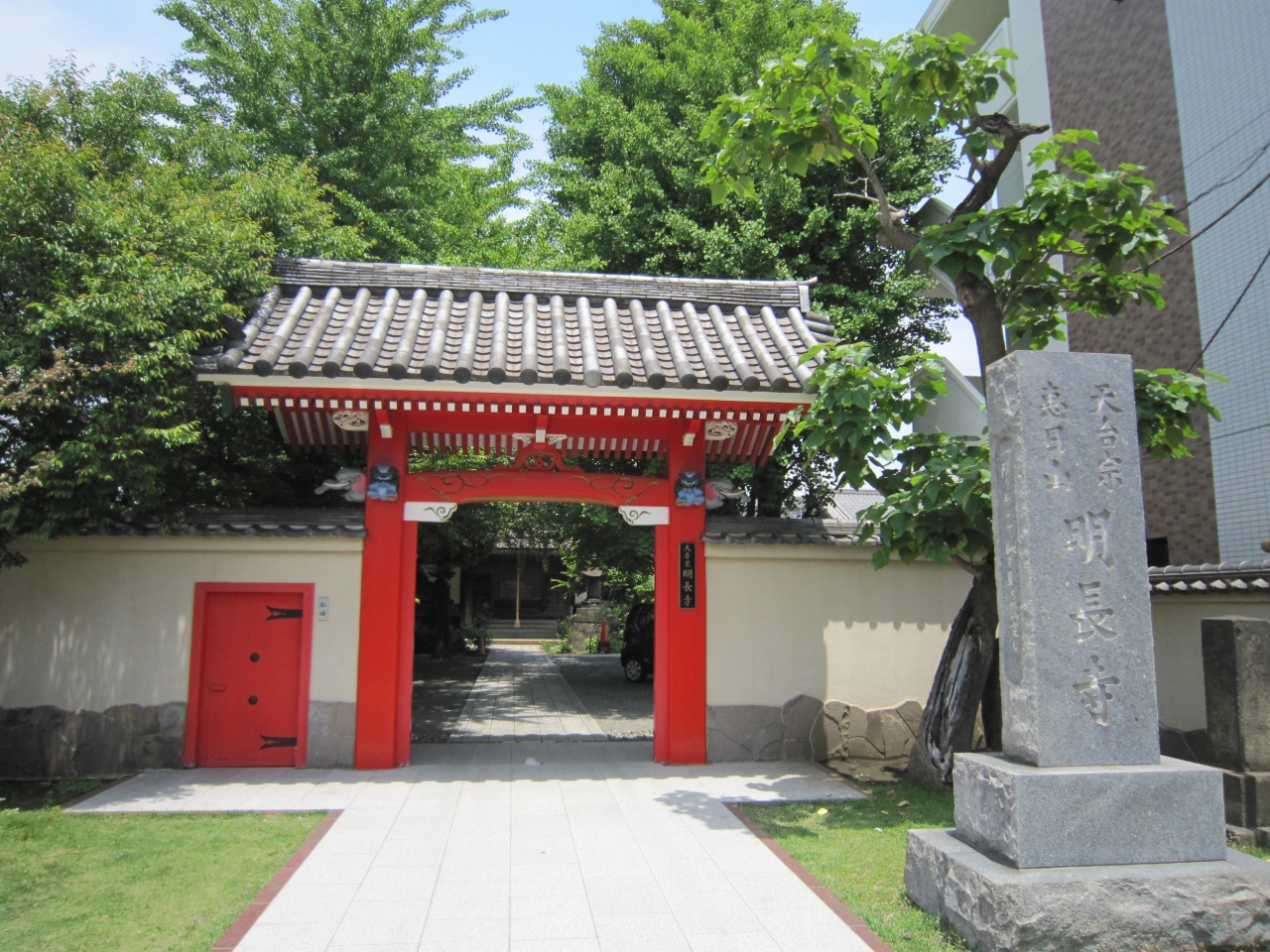馬頭観音堂から表参道を大師方面にちょっと歩いた所にあります。普通のお寺のようですが由緒がある寺のようです。門が赤いです。門の右手にお寺所有の文化財である国重要文化財の小袖や市重要歴史記念物の説明板があり、そして文化財保存の都合上拝観することはできないとありました。