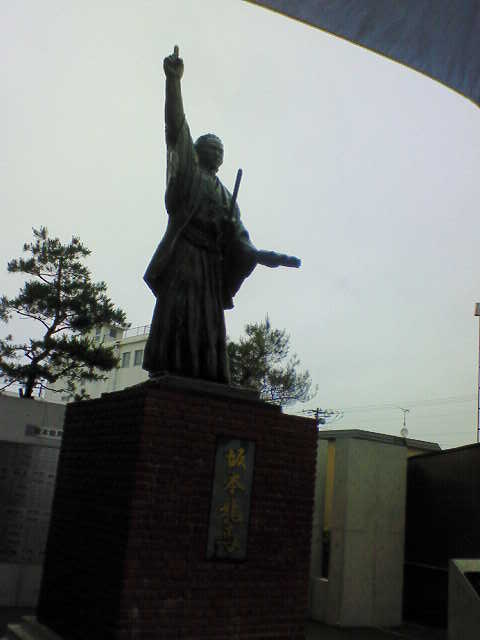 台座の上にまっすぐに立ち、真上を指差している姿はスポーツの試合でよく見る感じのちょっと派手なポーズで、なんとなく龍馬らしからぬ感じもします。
