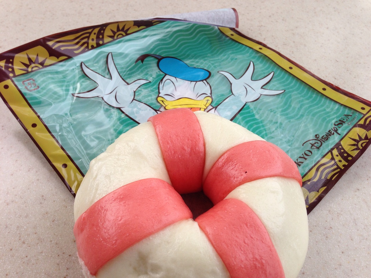 ぷりぷりなエビが入ってドナルドの包装紙がかわいいうきわまんのお店です。併設されたベンチでいただくうきわまんは、塩味は効いているので暑い日でもおいしかったです。園内では甘い味のスナック類が多いので貴重な存在でした。
