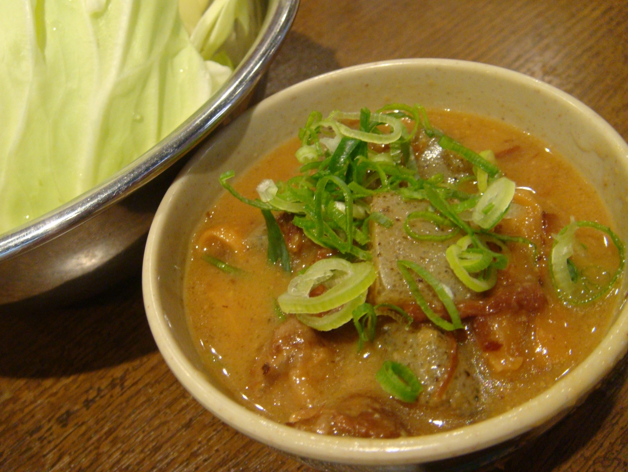 ・とりあえずメニュー1品(キムチ、どて焼き、えだ豆)ーやはりどて焼きがお薦め