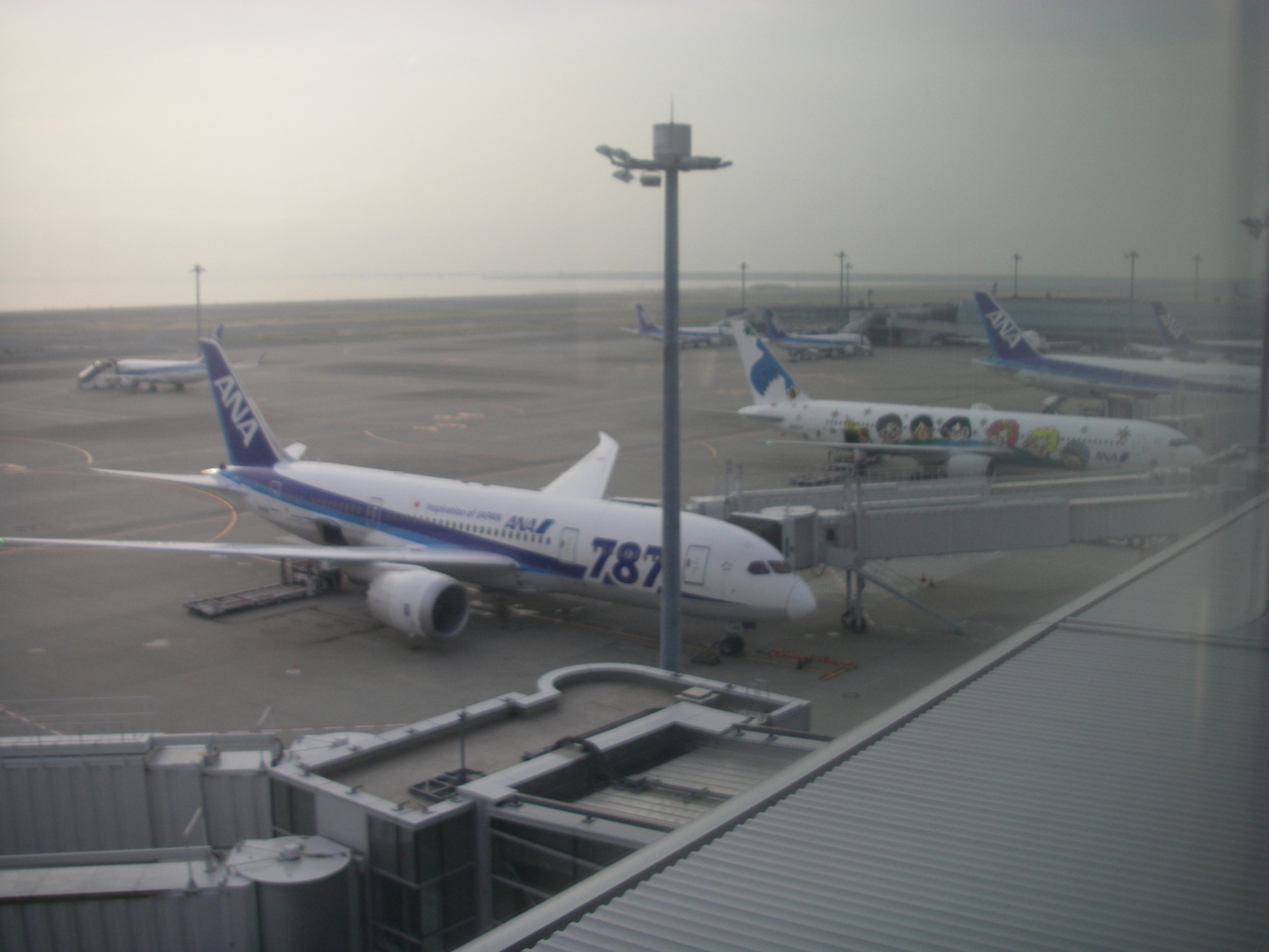 奥に海が見えま、海と飛行機を同時に見ることできるため、第1ターミナルの展望よりお勧めです。