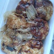 大きめのたこ焼きで少し甘めですが美味しいですよ。