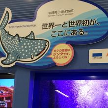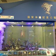 降りたら少し南国気分になって気持ちが高まりました。荷物を受け取り出てみたら水族館の宣伝の小さな水槽がありました。中の色鮮やかなお魚に癒された