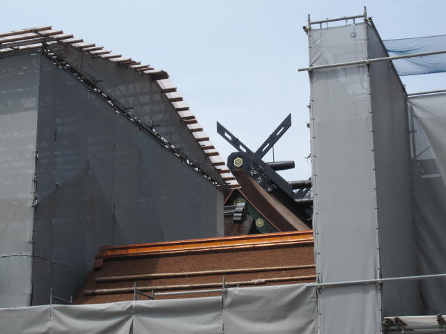 がっかりされている観光客の方もいらっしゃいましたが、大遷宮後はまた約60年間変わらずに御本殿に参拝に行けますから、逆に修造中の御本殿と御仮殿を両方拝める貴重な期間でもあったのです。