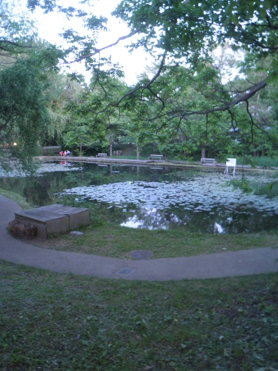 札幌の北海道大学のキャンパスの13条門をまっすぐ行った突き当りにある工学部の建物があります。 その南側にある大野池で休憩しました。 小さなハスの葉が水面に浮き始めていて、いかにも涼しげでした。 札幌も最近はかなり暑いのですが、学園祭の準備で賑わっていました。