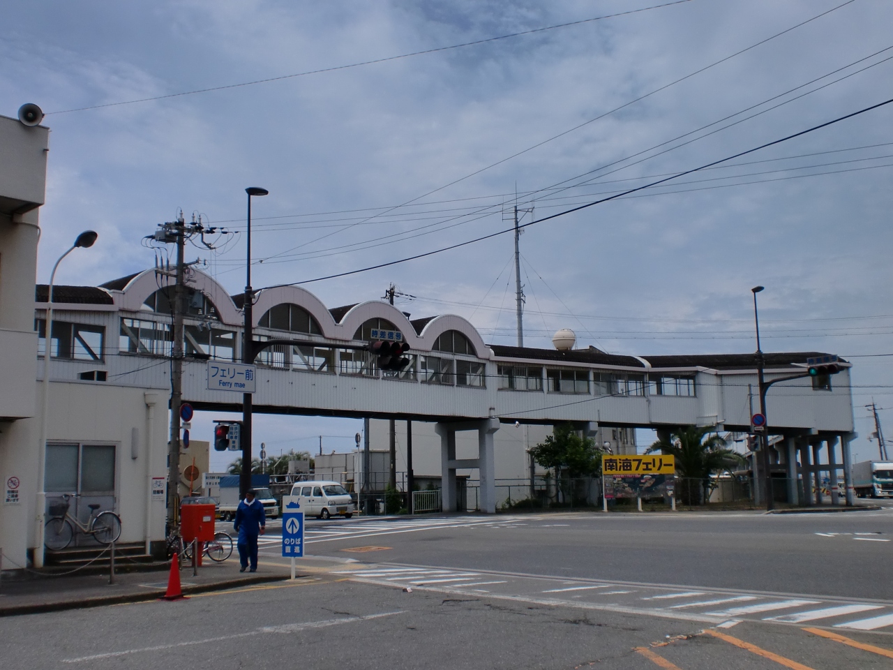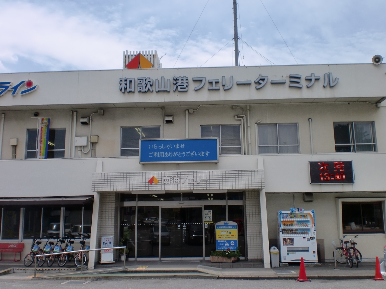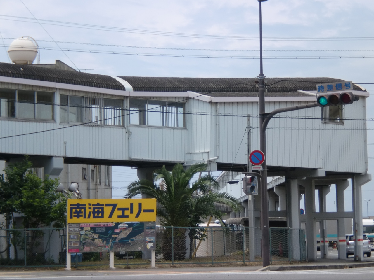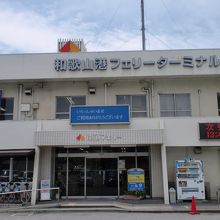 大阪方面からだと、和歌浦・雑賀崎に行く道左サイドの手前に切符販売所があり、歩行者はフェリー乗り場までターミナルで連結された施設を徒歩で歩いていけます。
