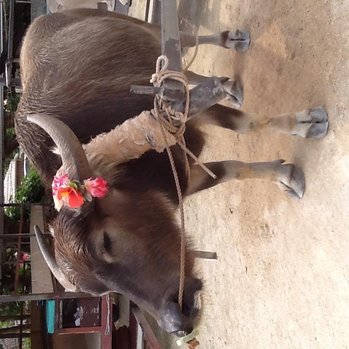 昔ながらの瓦屋根の家達。水牛に乗っておじ~の説明で街を循環させてもらいました。