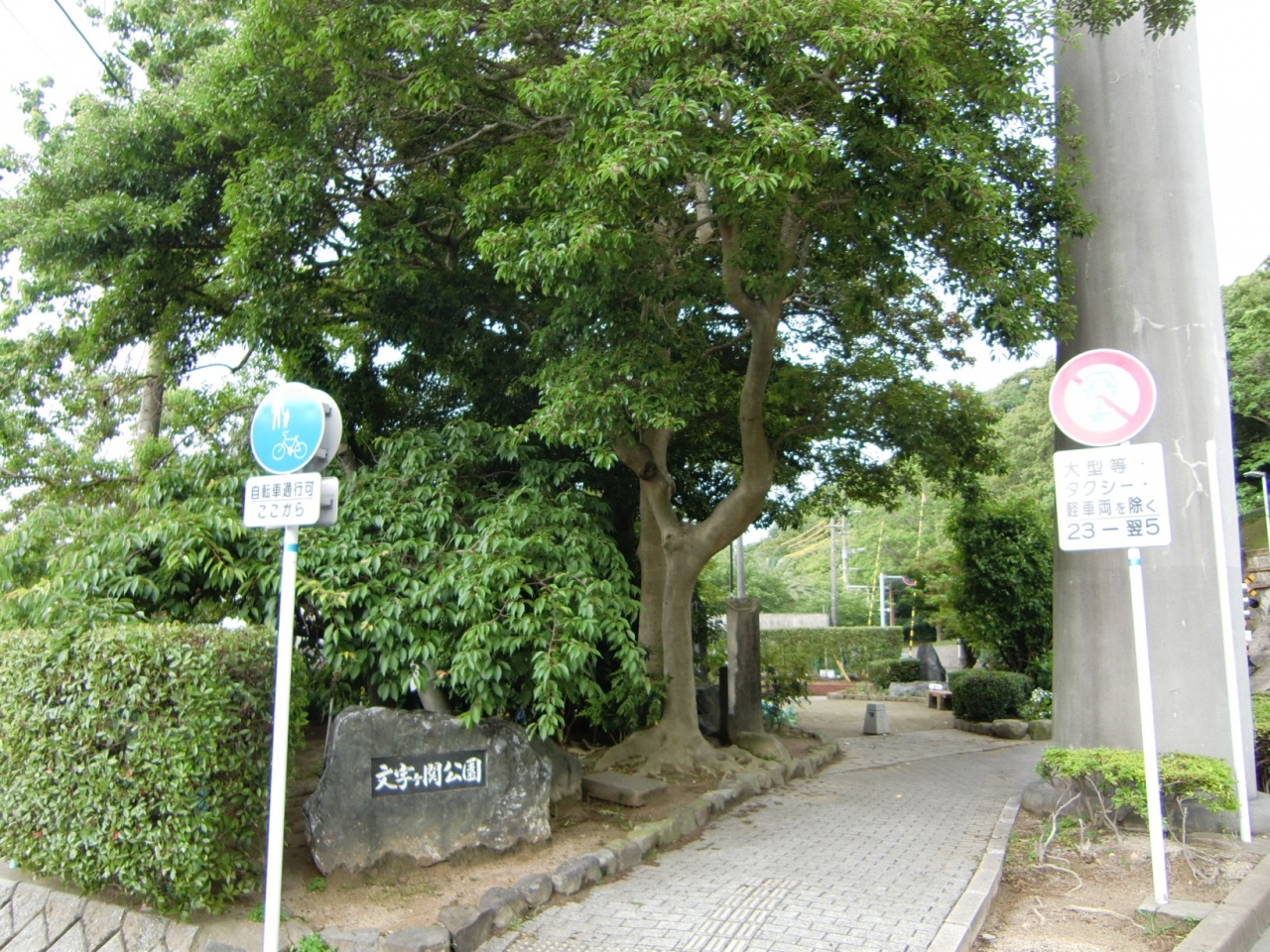 門司区の和布刈神社へ向かう途中の、最初の大きな鳥居の横に、文字ヶ関公園があり、その公園内に、門司関址の碑がありました。