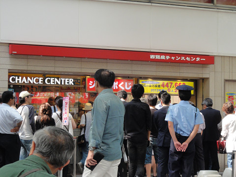 数寄屋橋交差点、交番前の西銀座チャンスセンターは宝くじ購入の人気店だそうです。窓口は7番迄あるようですが人気は1番の窓口、ドリームジャンボ最終日に行きましたが、1番だけ長蛇の列で30分待ちでした。買わなきゃ当たらないと久しぶりに宝くじを購入、前後賞合わせて5、5億円のジャンボと1等5000万円の宝くじがありました。