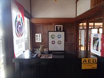 スタンプが有ります。デザイン性豊かなスタンプを押すことができます。デザインは、布袋様と建物で、大きな判です。