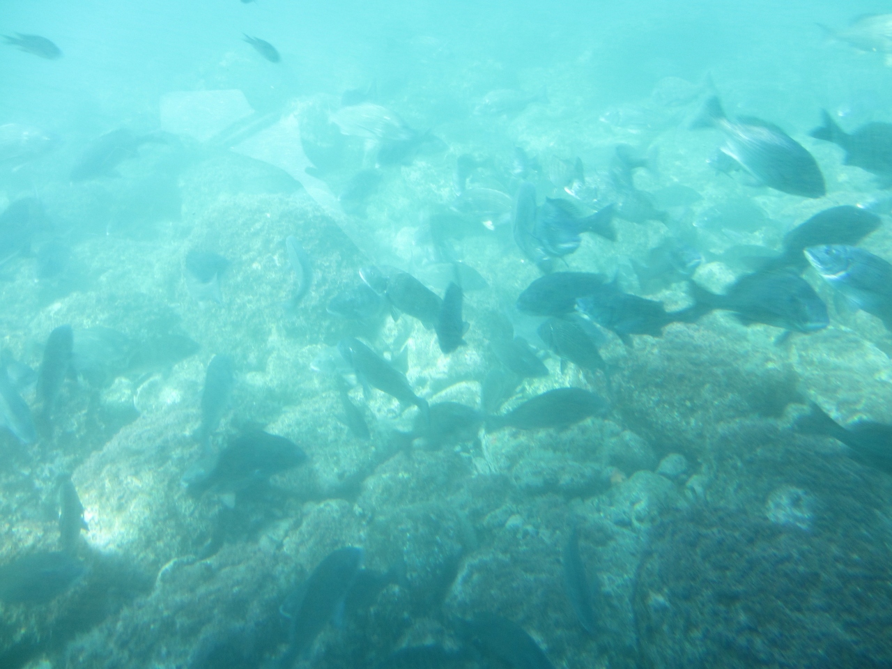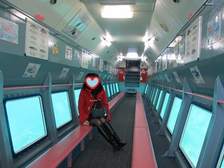 「島」に着くまでは呼子の景色が楽しめ、アナウンスで下に降り、魚(殆ど鯛、たまにウニも見える)を観察できます。