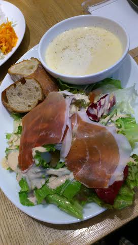 サラダだけだと物足りないかなと思ったけど、ブロッコリーや豆、生ハム、などいろんな野菜も入っていてお腹いっぱいになりました。