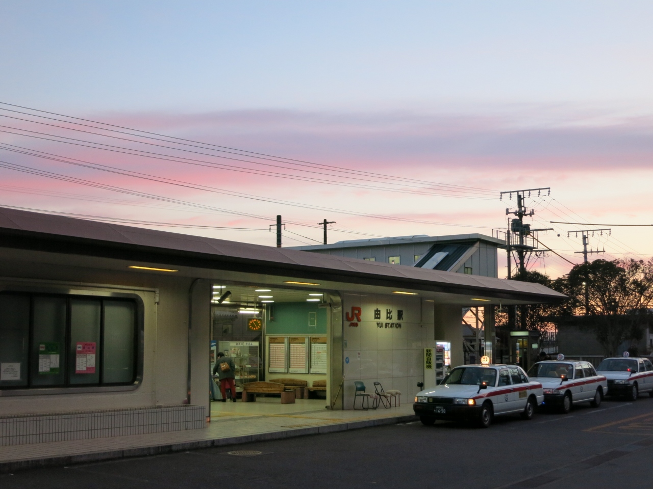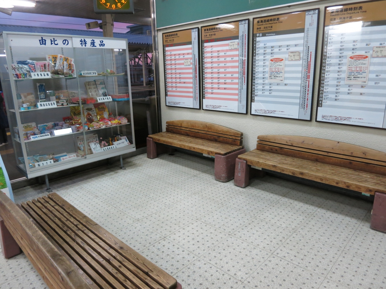 東海道の難所の一つ、さった峠をひかえ、海岸線に斜面が迫り、東海道線や国道1号線、東名高速などが波打ち際に集中します。由比駅はそのような峠の手前にあり、さった峠や由比宿の最寄り駅となっています。
