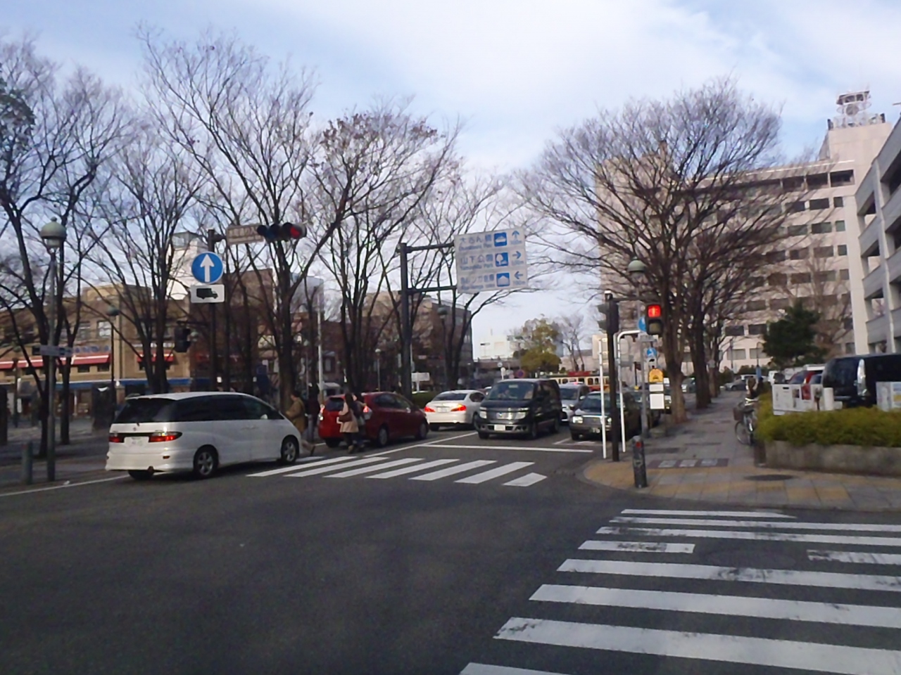 片側一車線で街路樹としてイチョウの木が植えられています。