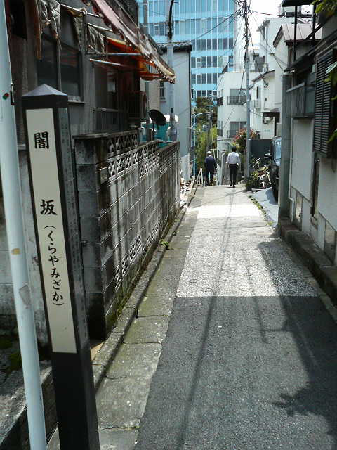 住宅の間を下っていくただの坂道という感じですが、かつては坂の左右にあったお寺の樹木が繁り、薄暗かったためこの名がついたとのこと。