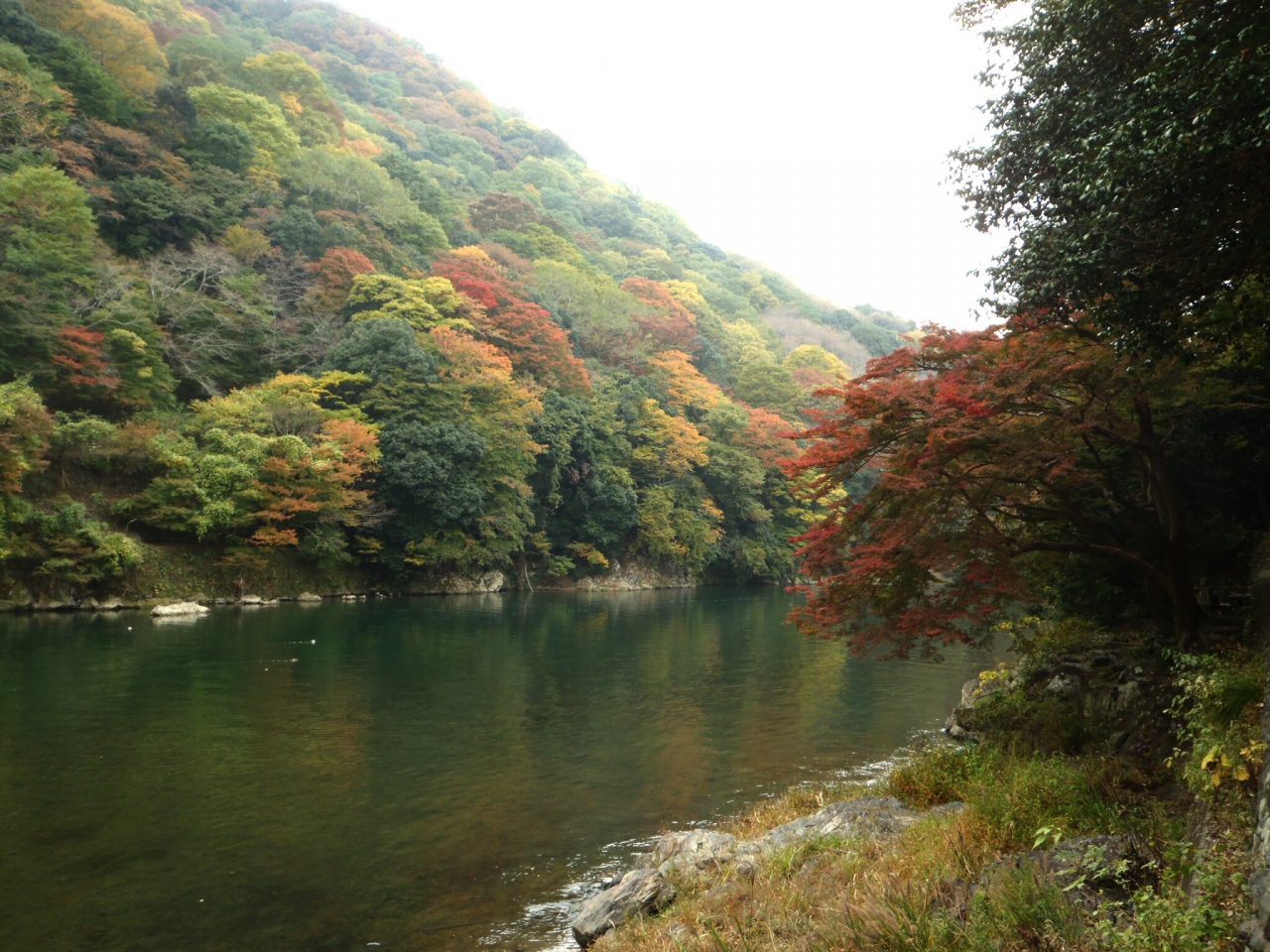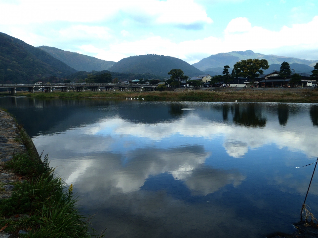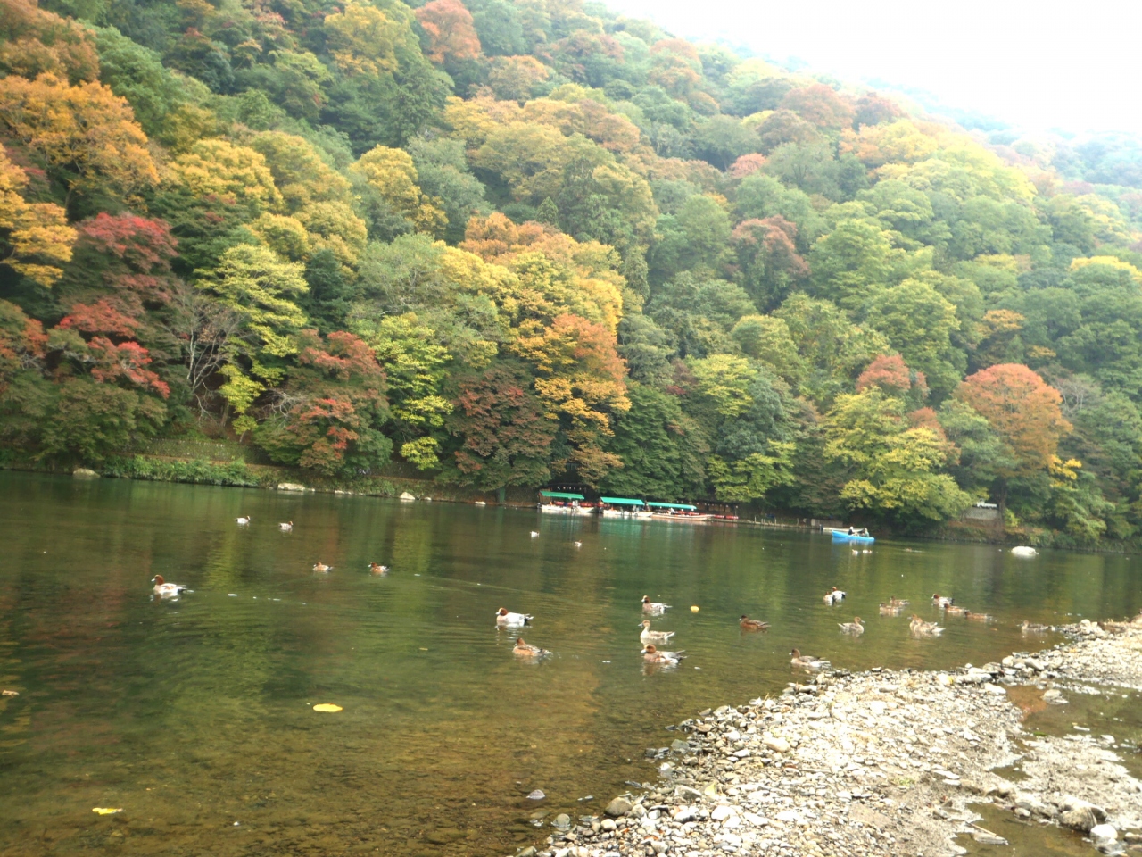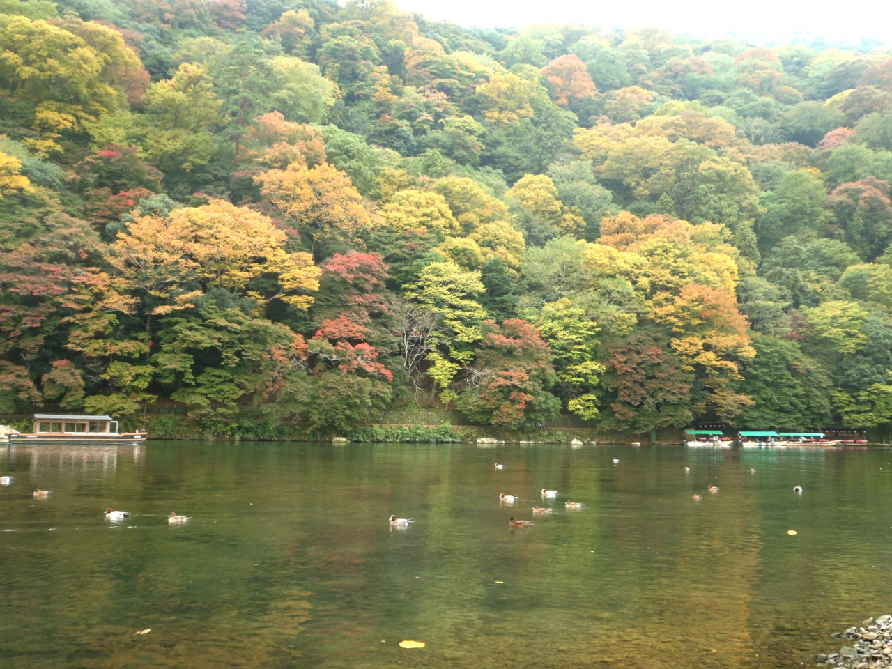 渡月橋より上流部分は、大自然がそのまま残っており、水鳥もやってきます。やはり、紅葉の時期がいちばんでしょうか。