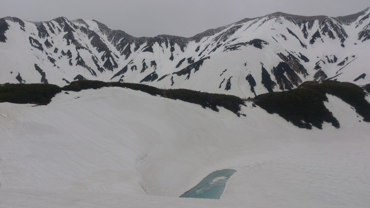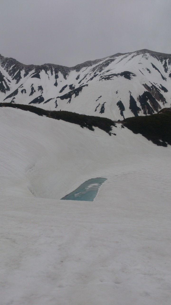 5月末、まだ池は雪ノ中、凍ってました。だけどうっすら溶けてる部分も・・・。周りの雪景色を見ながら、雪を踏みしててハイキングをするのもとても楽しいです。まだまだ雪深い仲、ヒール靴で歩いている人もいてびっくり。ちゃんと登山用で行ったほうが良いと思います。