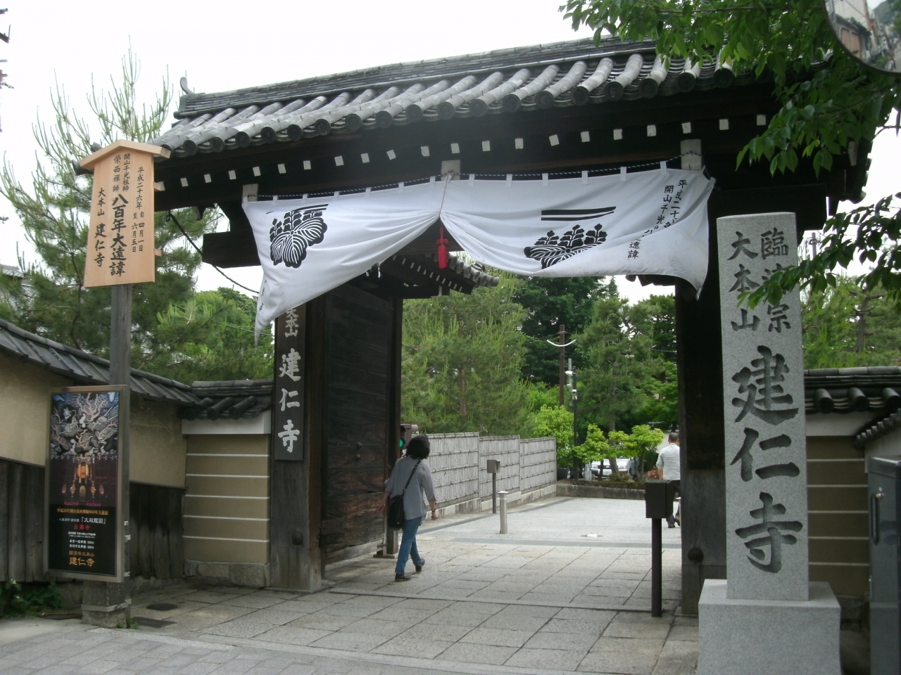 京都最古の臨済宗の禅寺で、教科書などに載っていて誰もが知っている国宝の俵屋宗達作の風神雷神図(お寺にあるのはレプリカ)や双龍図や雲龍図などもあり見ごたえの多いお寺さんです。方丈と法堂は、拝観料500円がかかりますが、境内は自由に出入りできますので、タップリ時間をとって散策してみてください。