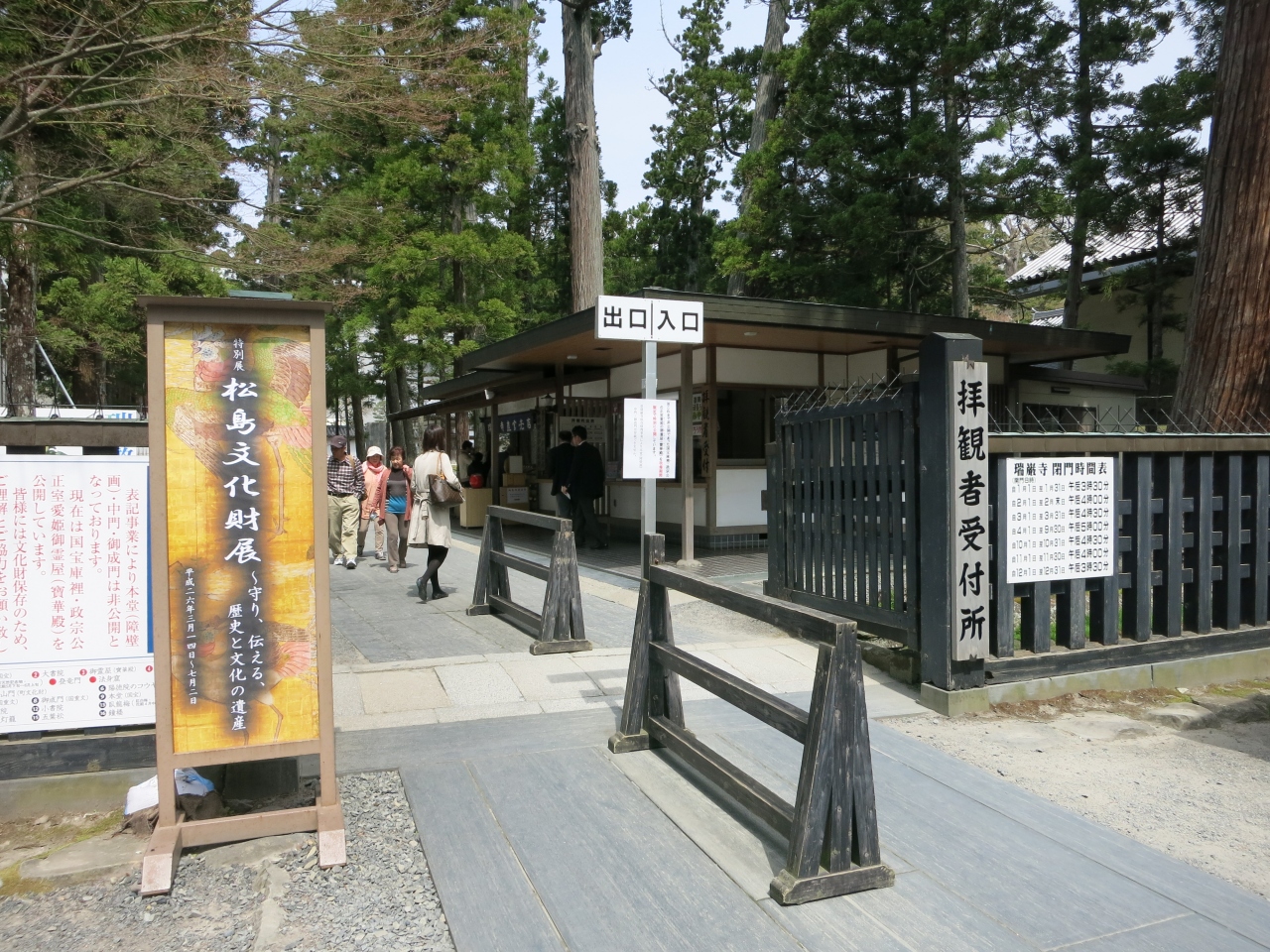 松島観光では絶対に外せない所です。現在、瑞巌寺は平成大修理の最中で本堂、中門、御成門は見学できません。その代わりにでしょうか、非公開だった陽徳院御霊屋「寶華堂」、庫裡が期間限定で公開されています。また、大書院では御本尊、政宗公・2代忠宗公の大位牌、三代開山木像も特別に公開され、間近に見ることが出来ます。