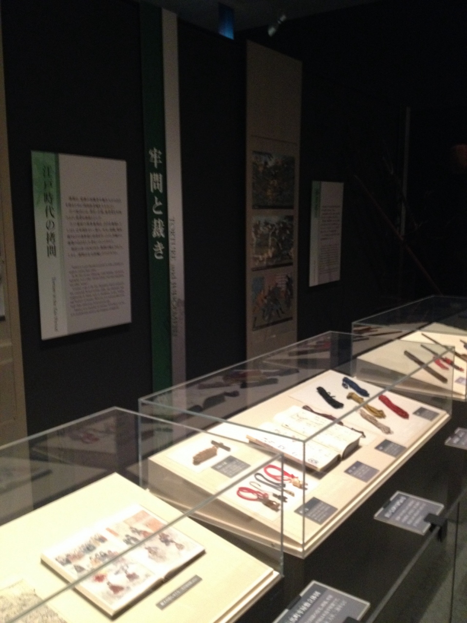 明治大学博物館の刑事部門ですが、拷問器具がずらりと並んでおり、インパクトがあります。目玉?はニュルンベルグの鉄の処女で、宗教的な罪・反逆者・親殺しの罪を犯した者に使用された拷問・処刑具です…レプリカと言えどもかなりのインパクトです…