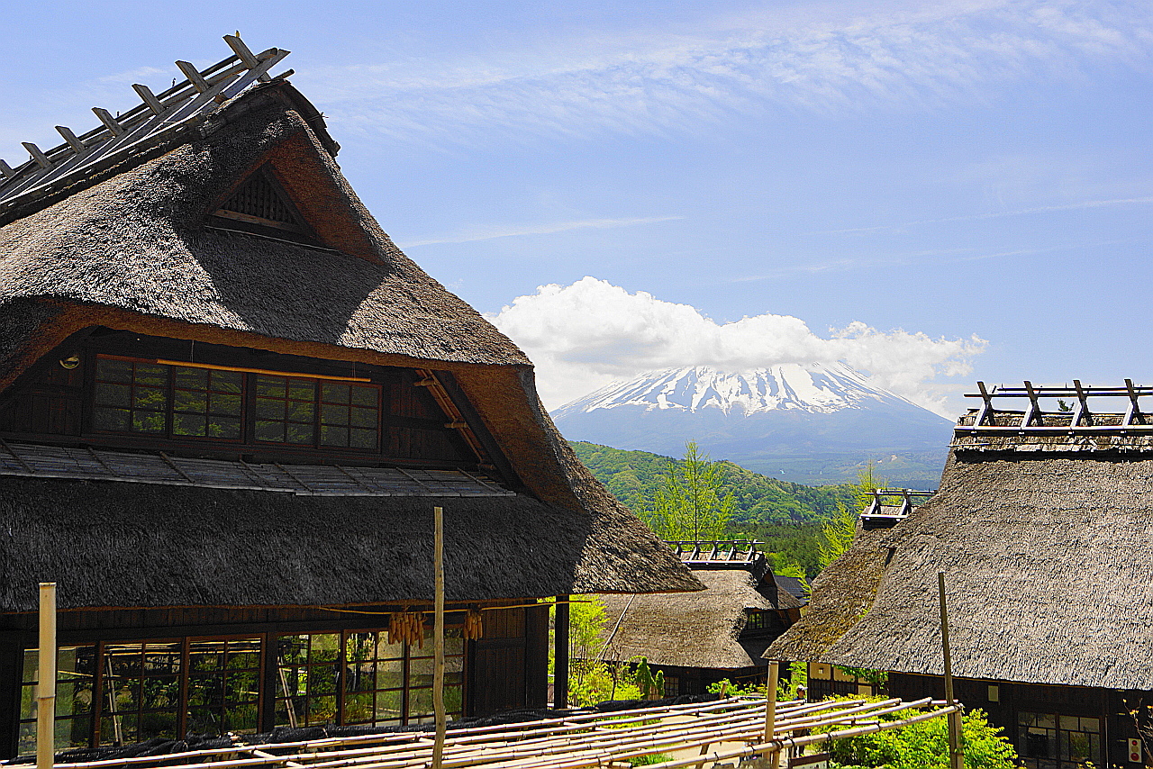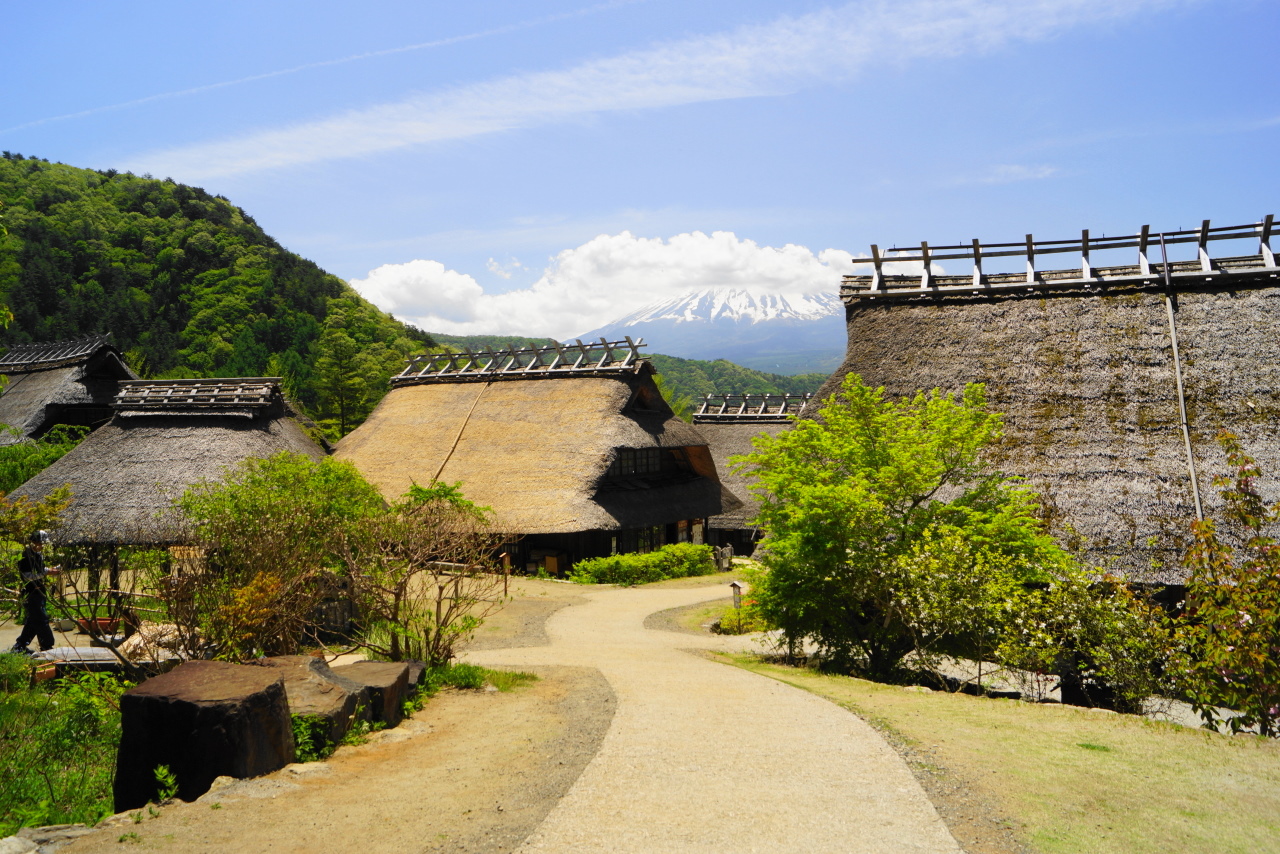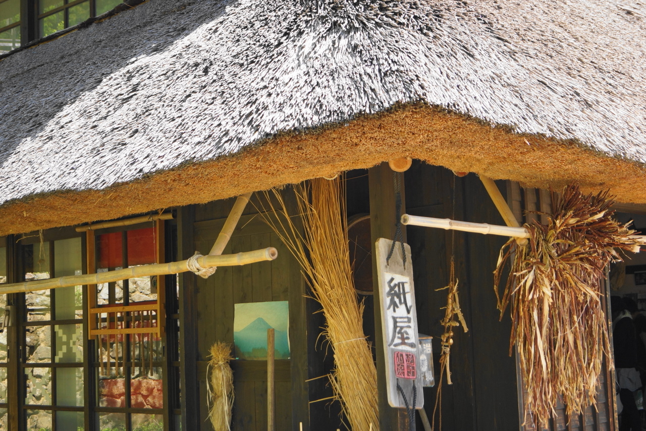 西湖のすぐ近くにある茅葺民家を再現したスポットです。