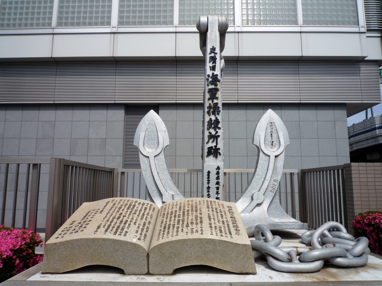 そばにある海軍操練所跡の石碑は錨の形で目立ちます。