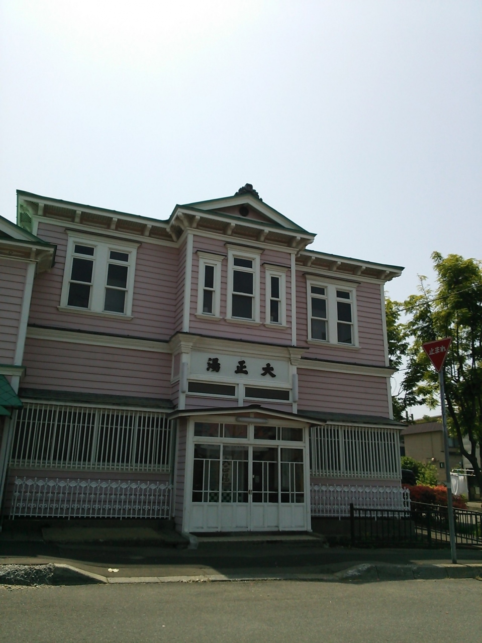 普通の住宅地の中にあるのでかなり目立ちます、ピンクの和洋折衷の建物は大正3年創業の去年(平成26年)100年を迎えた銭湯です。