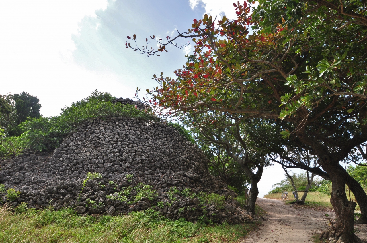 牛セリ市場前の道路から突きあたりを左折、黒島ビジターセンターを通り過ぎ、海へ向かっていくと宮里海岸の入り口にあります。