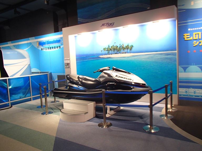神戸海洋博物館/カワサキサールド (こうべかいようはくぶつかんかわさきさーるど)には、海の乗り物のジェットスキーや陸のバイク等、様々な乗り物が展示されていて、触って、乗ることもできるので、おすすめです。ぜひ、一度、行ってみてください。