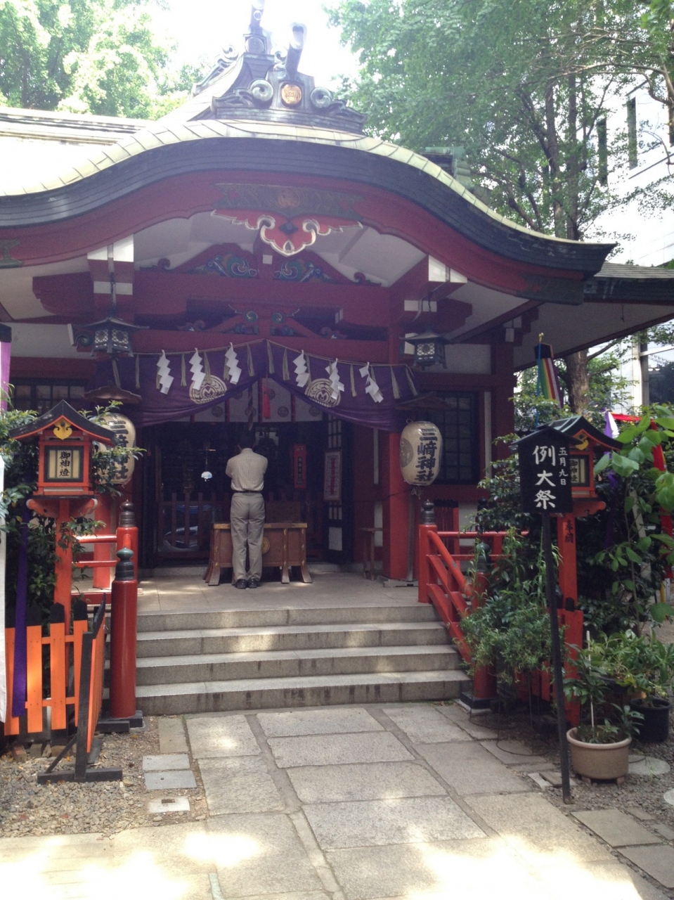 徳川家光が参勤交代の制度を作ったとき、自身も江戸城に出入りする際にこの三崎稲荷神社に参拝し、諸大名にも参拝を促したという言い伝えがあります。さらに大隈重信などが海外へ行く前は、旅の安全を祈願するために立ち寄ったようです。