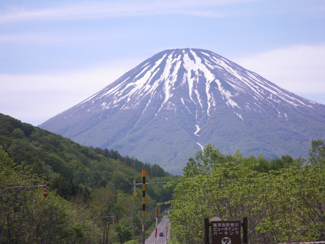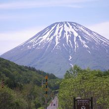 洞爺湖から倶知安へ向かう国道を走っているとまっすぐな道路が山を越え、谷を越え・・・としていく途中、真ん前に羊蹄山が立ちはばかります(?)