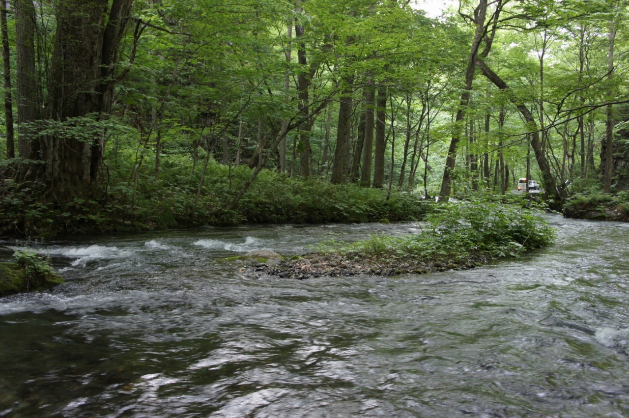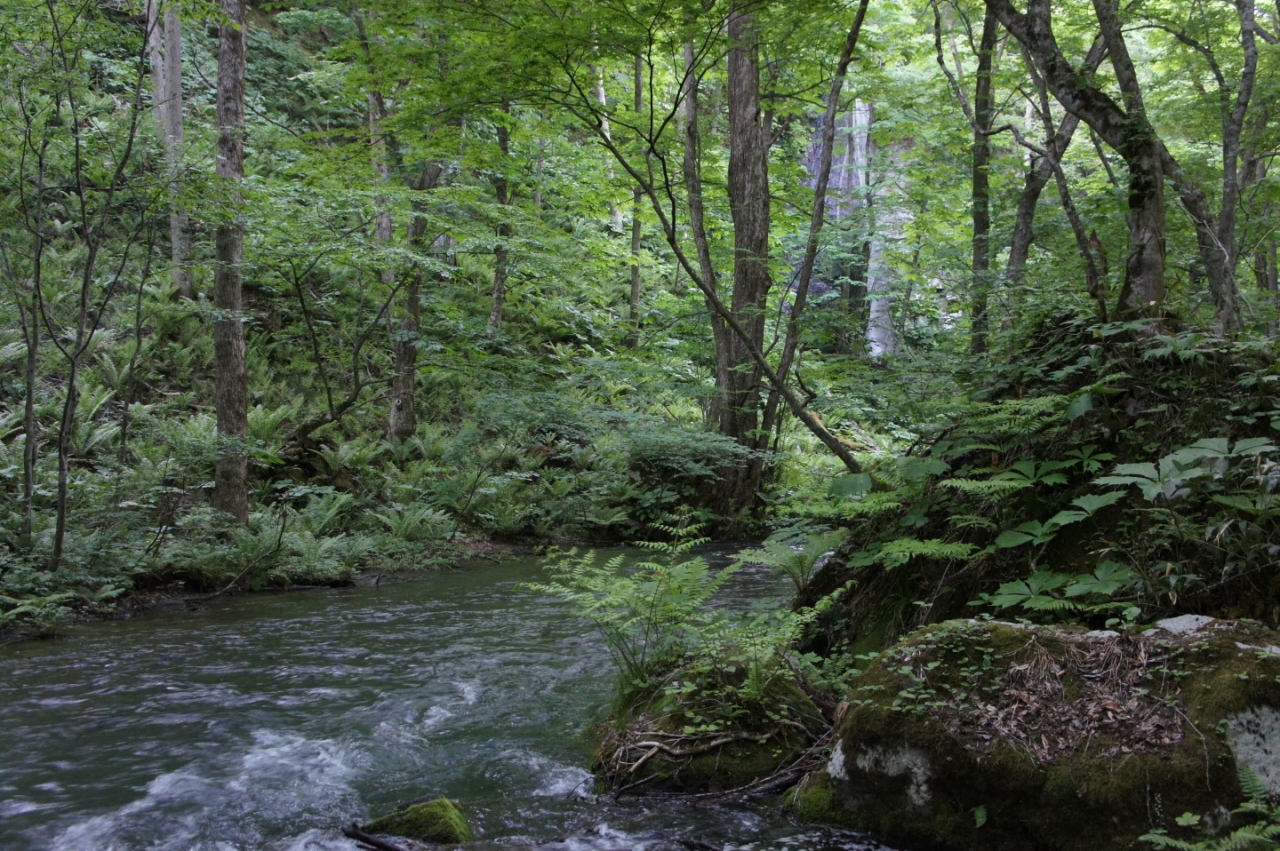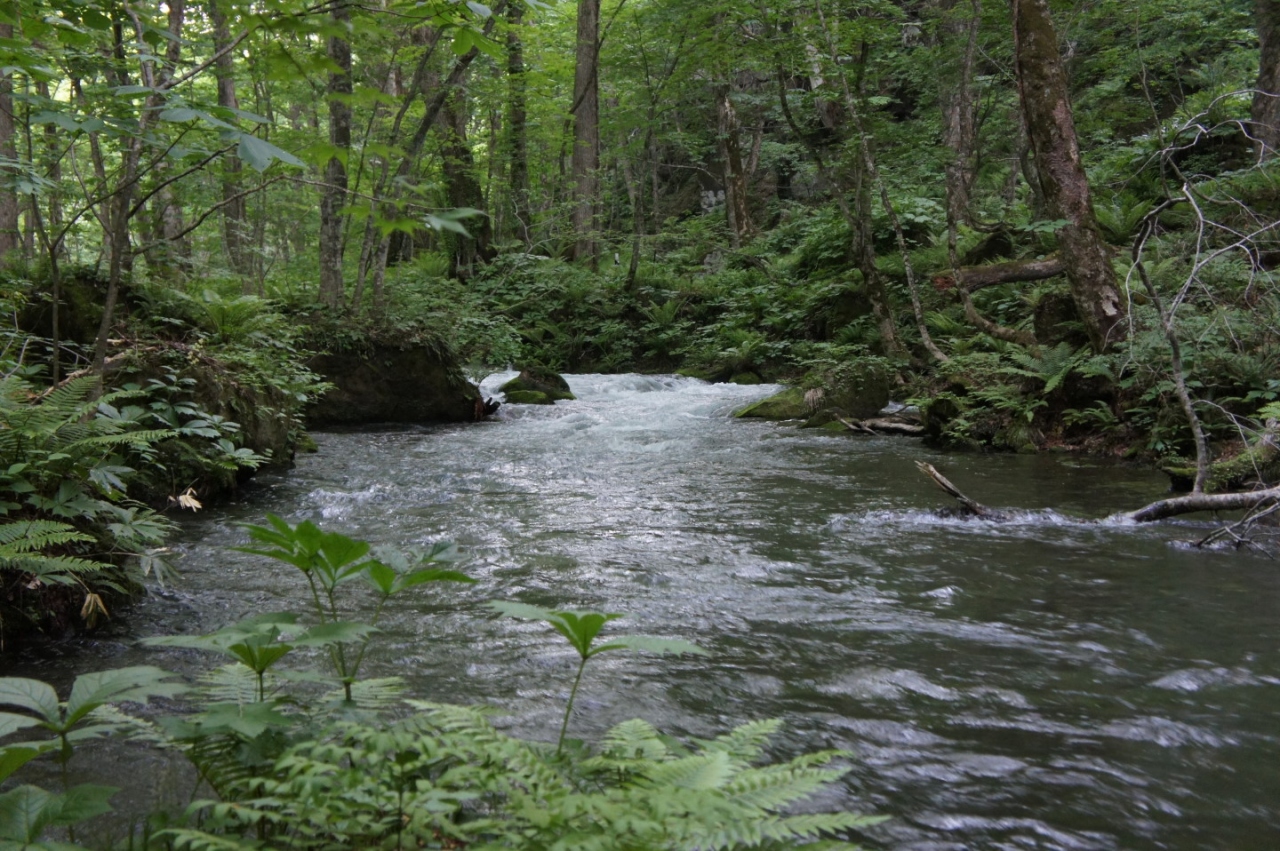 奥入瀬川の源流が十和田湖なので年間を通じて水量が一定であり、川石に生えた苔は水に流されることもなく生き生きと生息していました。