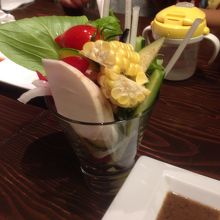 乳幼児がいる友達とのランチのため、座敷があるレストランを探していて見つけました。赤ちゃんがいる旨を伝えたら、座敷席を予約させてくれました。2時間の2500円コースで、サラダバーの野菜がどれも美味しい!とくに生で食べれるトウモロコシとナスが美味しくておかわりしました。