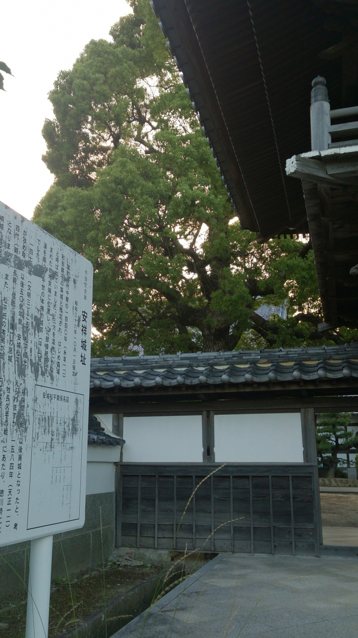 歩いていてここが城?と思ってしまいます。本丸跡地には立派なお寺が建っていて、瓦には三つ葉葵の家紋がついているのでここが徳川、松平と関係しているのがわかります。桶狭間の戦い以降に廃城になったということです。