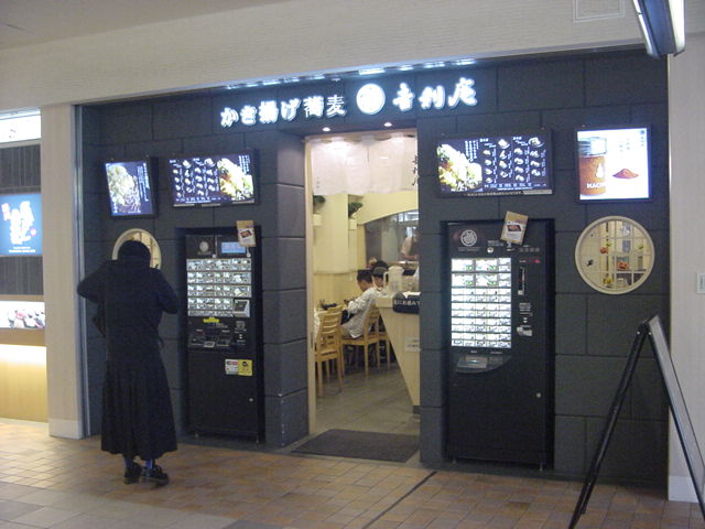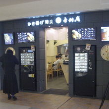 「エキュート品川」は駅ナカのショッピングゾーンですが、その一角にあるおそば屋さん。かき揚げそばの店を名乗ります。入口で食券を買って入ると、店内は一方通行になっています。カウンター席が充実していて、一人で行くのに適した造りです。かき揚げはサクサク。
