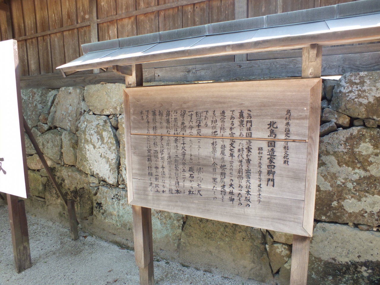 現在は、宝物殿の横の通りを抜けたところにあります。以前は本殿の後方にあったそうです。1664年の屋敷替の際、北島国造家屋敷、四脚門を境内拡張のため、現在の位置に移築したそうです。四脚門は、出雲大社関係の建築物の中では、最古のものだそうです。お庭では、結婚式の記念撮影が、行われていました。