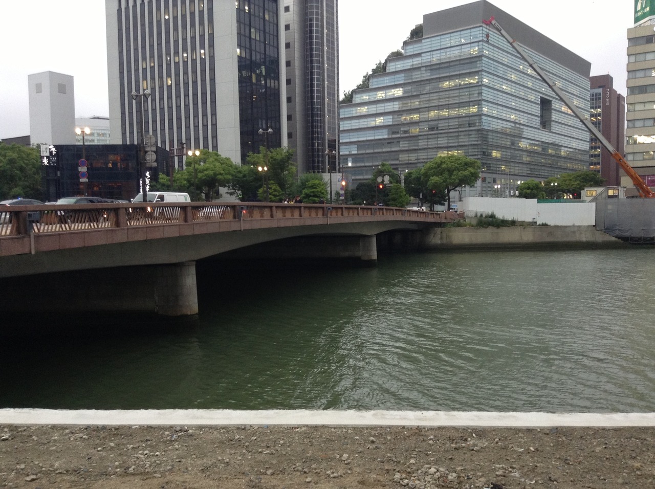 西大橋は、中洲と天神を結ぶ大きな橋です。明治通りが通っていて、市内の幹線道路です。歩道も広くて歩きやすく、橋が中洲と天神を繋いでいます。