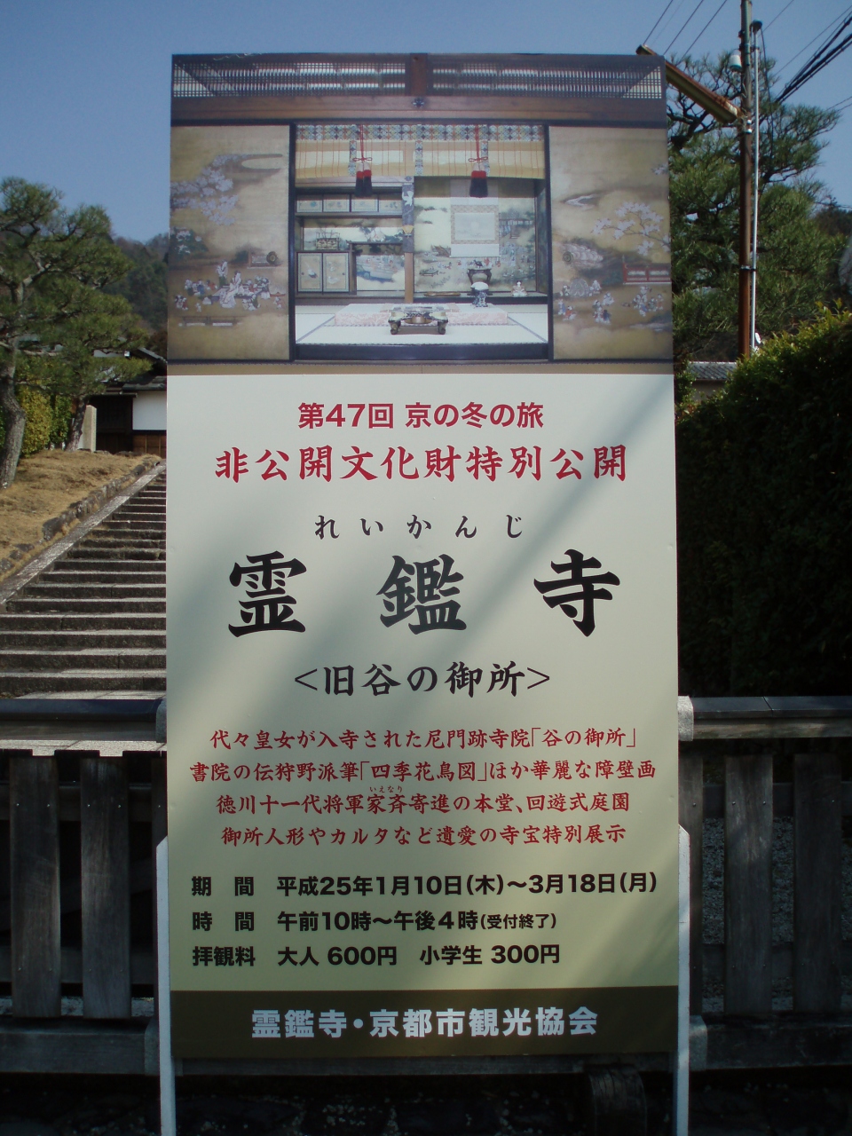 なんでも幻の将軍と言われた10代将軍徳川家治のお世継ぎ徳川家基の御台所になるはずだった婚約済みの閑院宮家の姫が家基急死後こちらの尼門跡[霊鑑寺4世・宗恭女王(そんきょうじょうおう)・第119代光格天皇の異母姉]になられたので代わりに11代将軍を継承した家斉が罪滅ぼし?で寄進したとか…