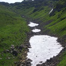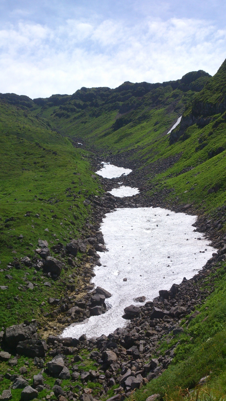 真夏でしたが山頂近くには雪渓が残っておりハイ松の緑とのコントラストも鮮やかでした。